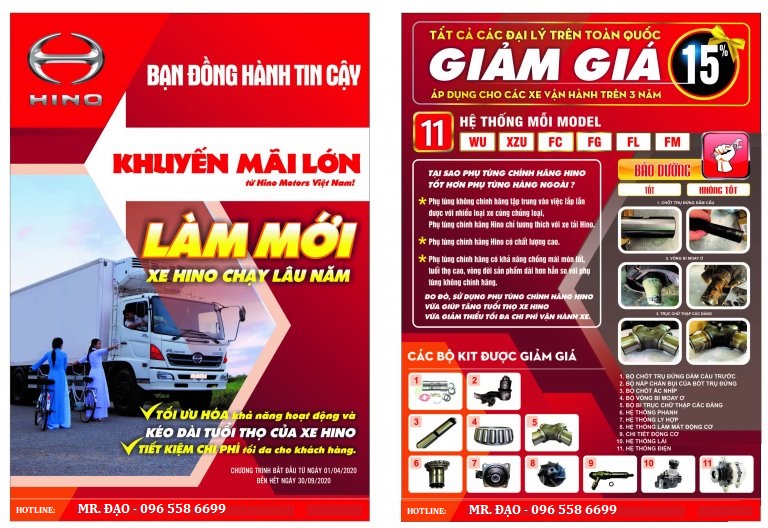 Với mục đích tối ưu hóa khả năng sử dụng, kéo dài tuổi thọ của xe, mang lại giá trị và lợi ích tối đa cho Khách hàng của Hino bằng những dịch vụ tốt nhất, linh kiện chính hãng chất lượng cao nhất, Hino Motors Việt Nam triển khai chương trình khuyến mãi “Làm mới xe Hino chạy lâu năm”: