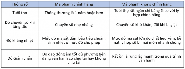 So sánh thông số đĩa ly hợp CHÍNH HÃNG và KHÔNG CHÍNH HÃNG