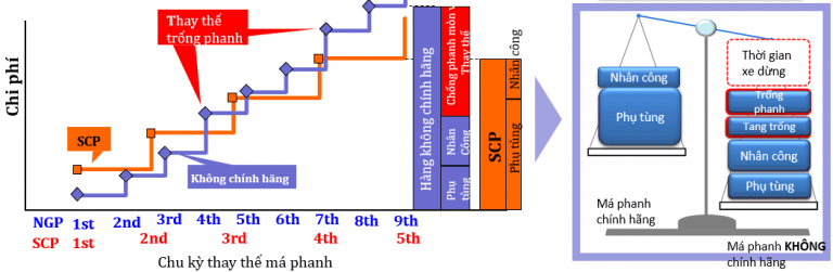 * So sánh chu kỳ thay thế và chi phí thay thế má phanh CHÍNH HÃNG và KHÔNG CHÍNH HÃNG