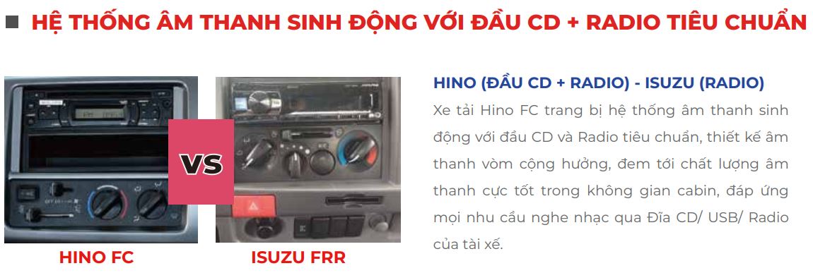 Hino Việt Đăng xin giới thiệu những điểm nổi nhật của xe tải 6.4 tấn HINO FC đối với xe tải Isuzu 6.4 tấn FRR.
