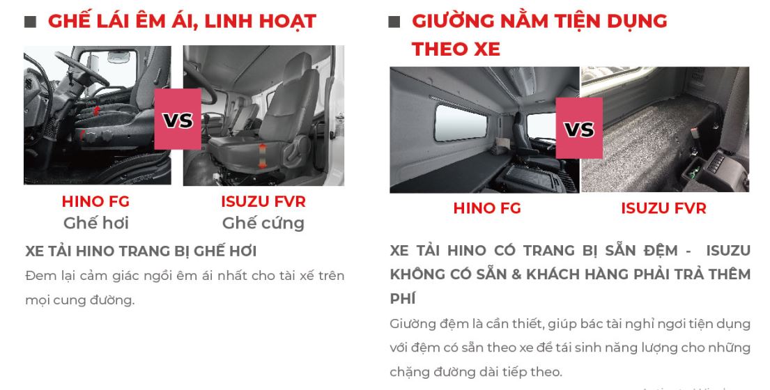 Hino Việt Đăng xin giới thiệu những điểm nổi nhật của xe tải 8 tấn HINO FG đối với xe tải Isuzu 8 tấn FVR.